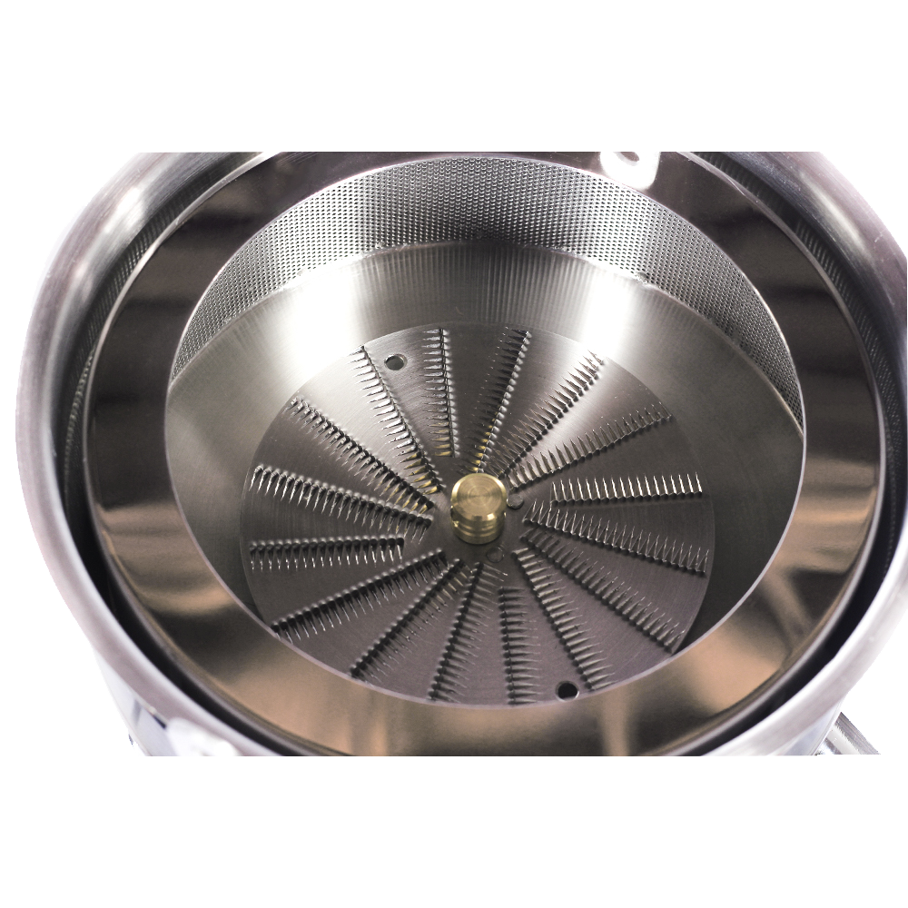 El disco cortador en acero inoxidable es de gran rendimiento gracias a sus 16 líneas de navajas que garantizan la mayor extracción del jugo de los vegetales.